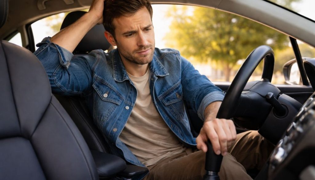 Commencez par un test très parlant : moteur allumé, pédale d’embrayage enfoncée à fond, essayez de passer la marche arrière. Si ça craque, ou si ça refuse d’entrer, c’est souvent que l’embrayage ne coupe pas totalement la liaison moteur/boîte. Faites aussi le même test avec la première à l’arrêt : si ça force, c’est un indice similaire.